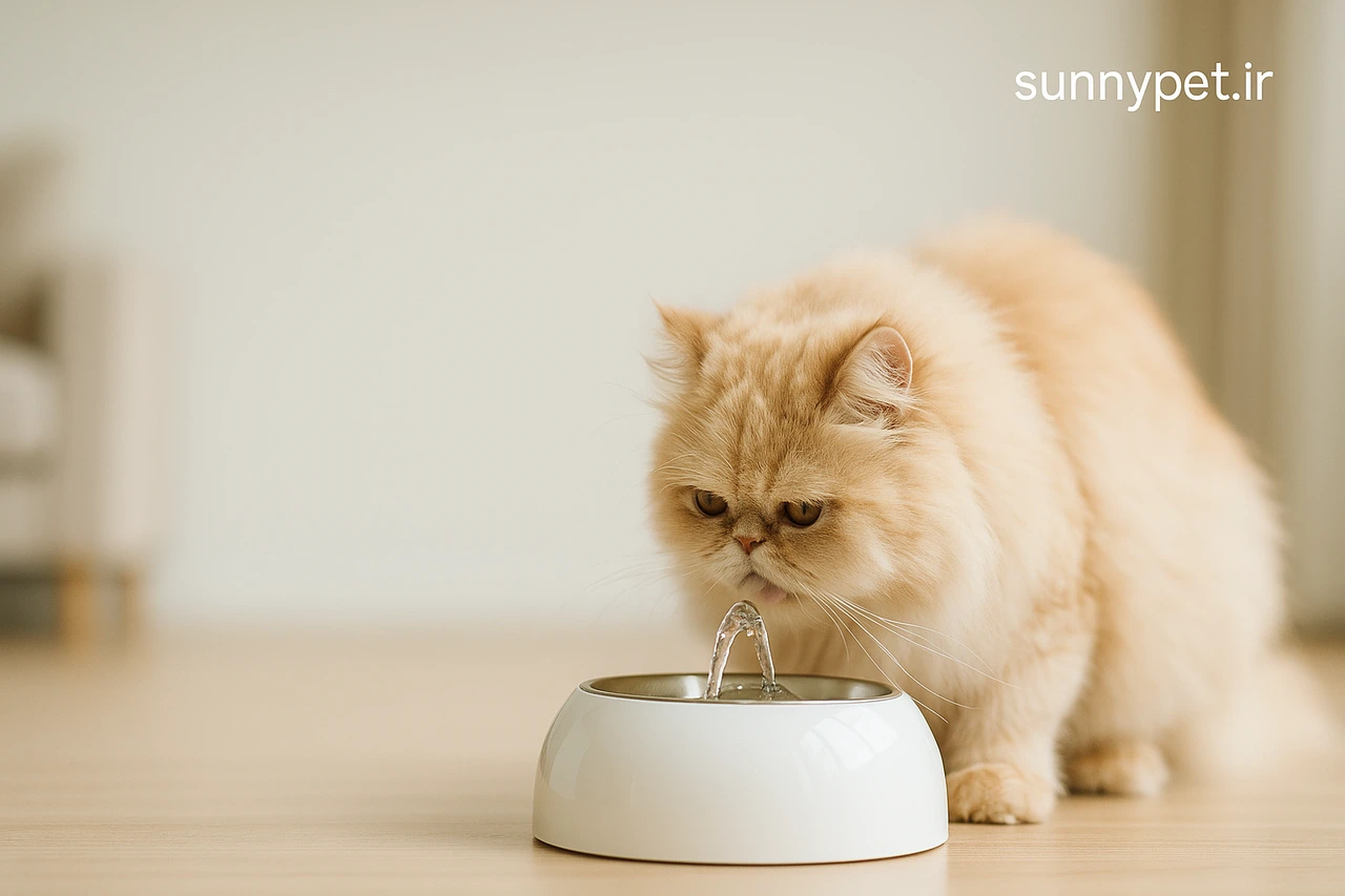- چند کاسه در نقاط دنج: یک کاسه کنار محل استراحت، یک کاسه در نشیمن، و یکی نزدیک ظرف غذا. دسترسی آسان یعنی نوشیدن بیشتر.